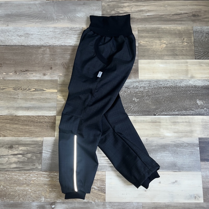 Kalhoty jsou dostatečně široké, takže se pod ně rozhodně vejde i například látková plena a děti mají volnost pohybu. Všechny velikosti mají v pase cca 9 cm vysoký náplet. Všechny velikosti také mají tvarující záševky na kolenou, aby dětem při nošení v nosítku nebo při hře neskončil spodní okraj nohavice v půli lýtek, a také všité reflexní prvky (nejsou nažehlovací, tudíž se nebudou po praní odloupávat) :-)